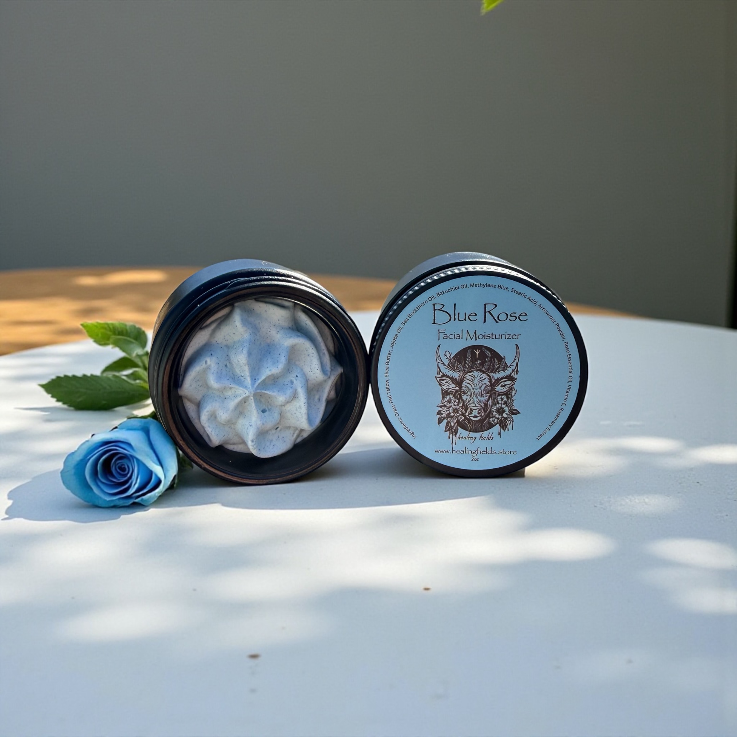 Blue Rose is our deeply nourishing facial moisturizer, crafted to support calm, balanced, and resilient skin. Made with grass-fed beef tallow and thoughtfully selected plant oils and butters, this formula closely mirrors the skin’s natural lipid structure, allowing it to absorb comfortably without clogging pores or feeling heavy.